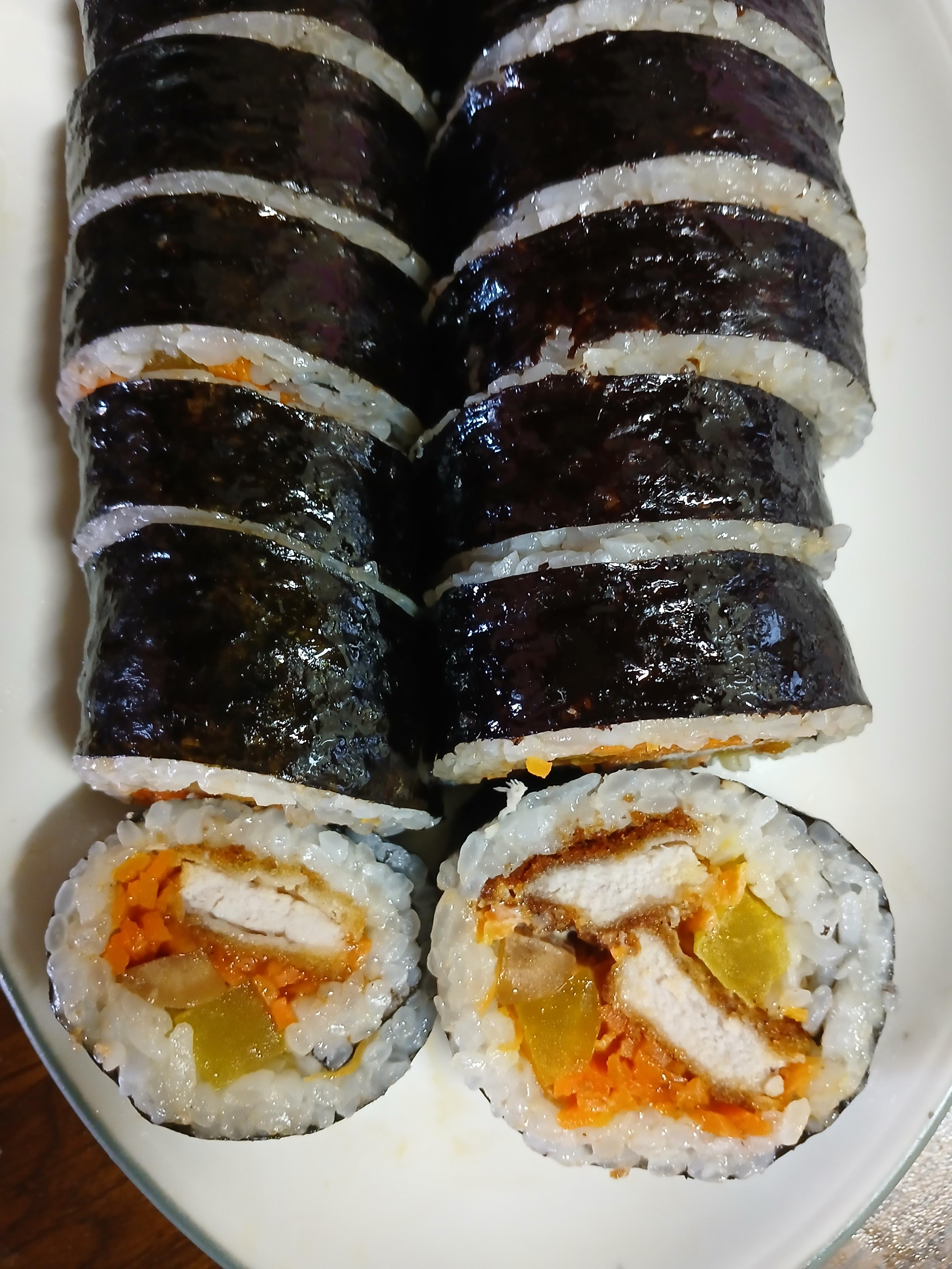 오늘 점심은 아이들이 좋아하는 메뉴 중 하나, 돈까스 김밥을 만들어봤다.