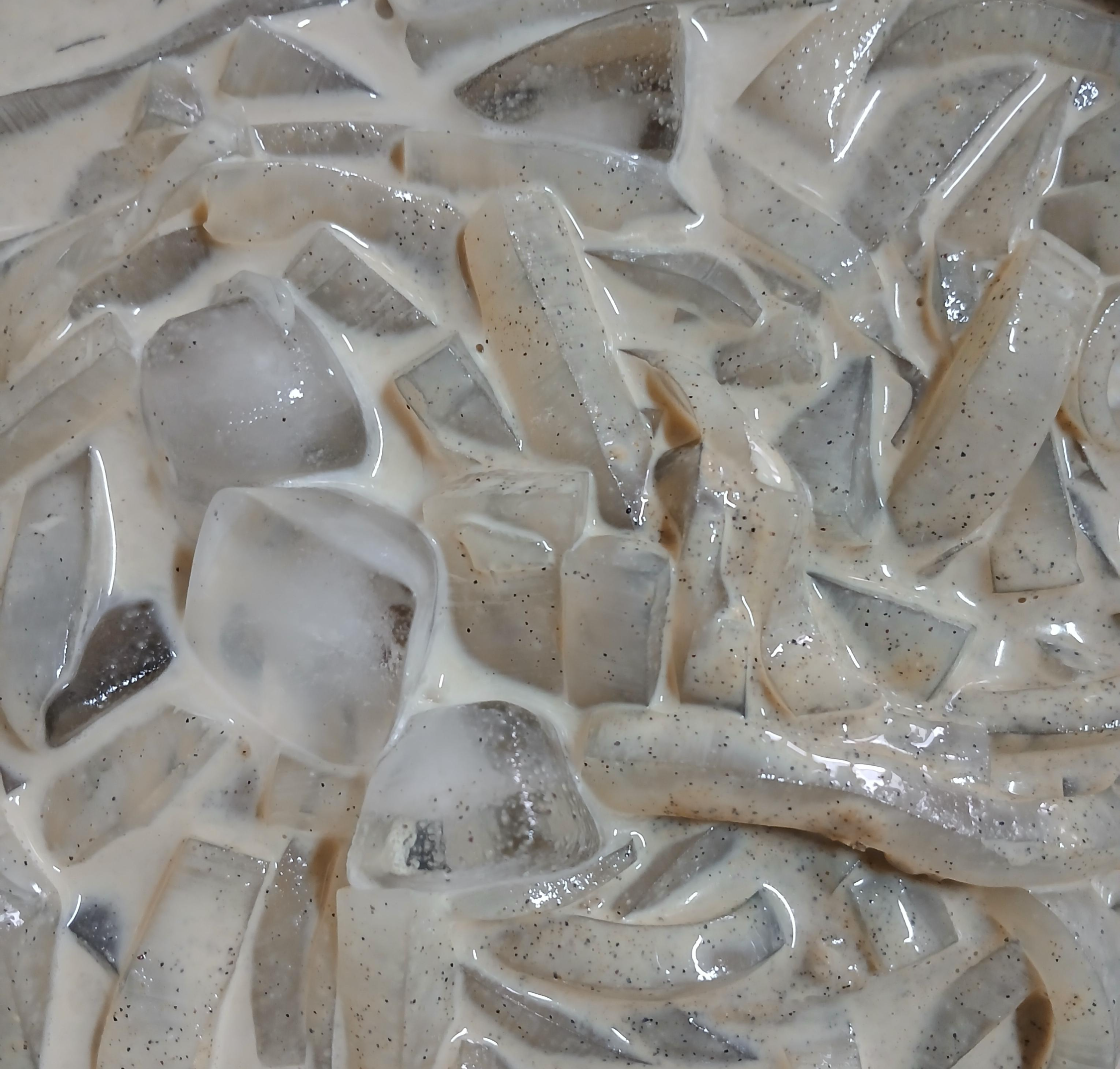 우유에 콩가루 풀어서 우뭇가사리 넣고 더 시원하게 먹고 싶다면 얼음 넣으면 끝.