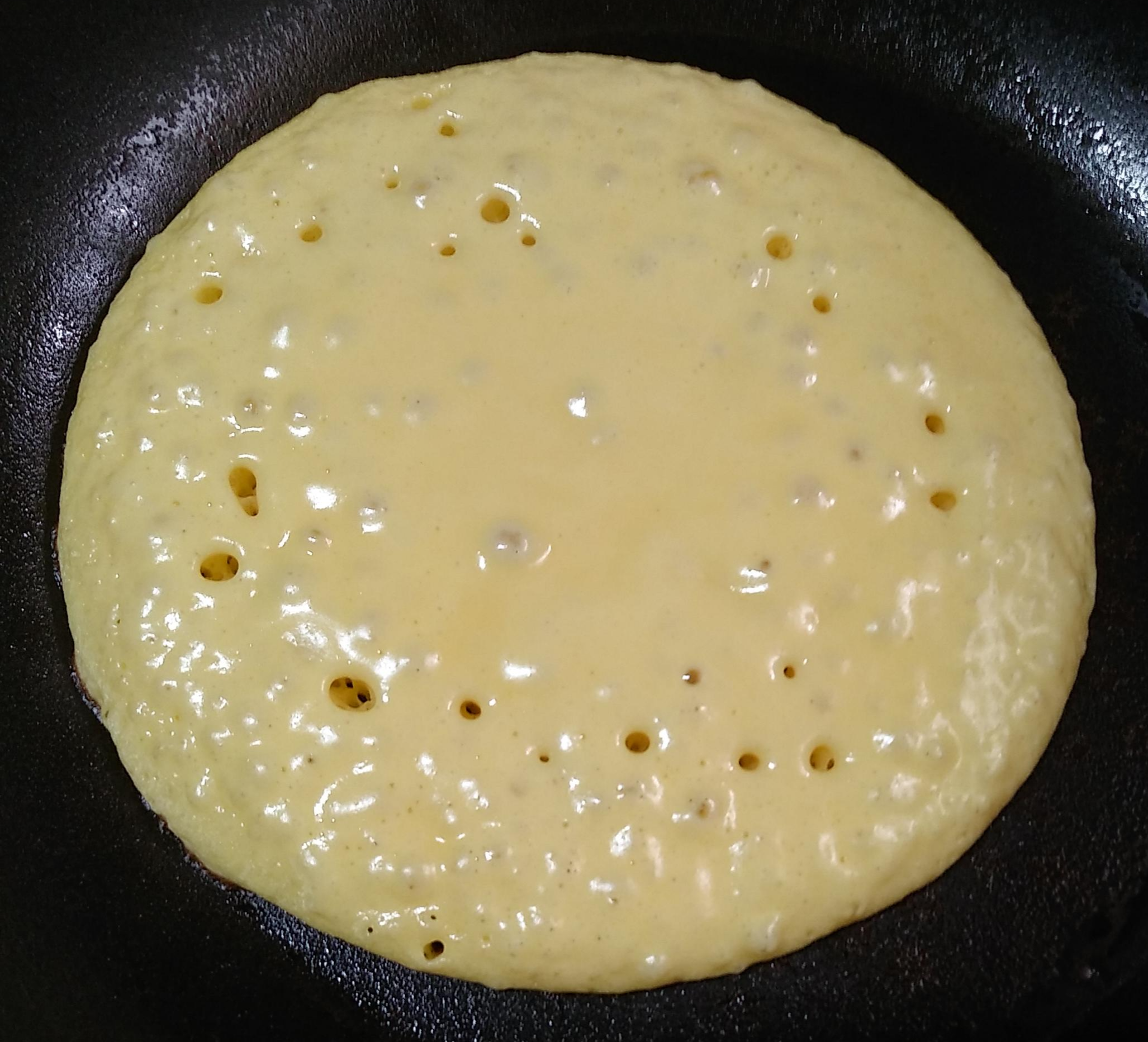 - 반죽을 팬에 부어 원하는 크기로 모양을 잡는다.