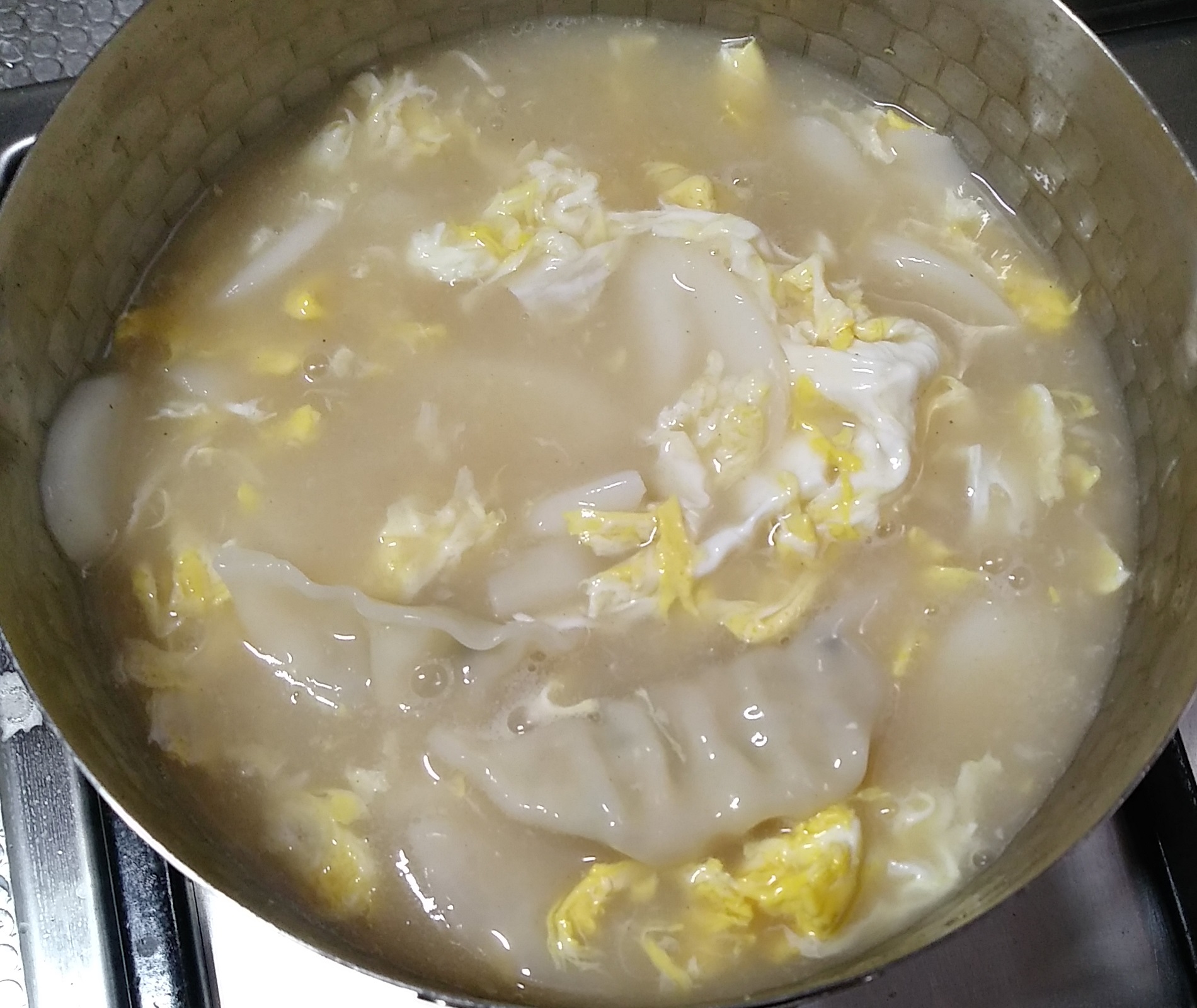 - 간장으로 간을 맞춘 후, 계란을 풀어 넣고 잠깐 더 끓인다.