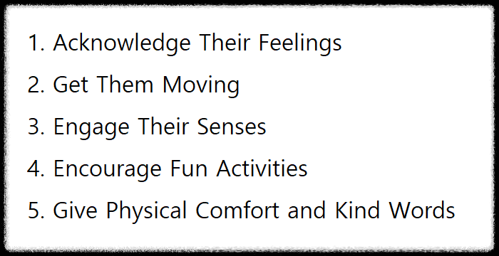 - 억지로 기분을 바꾸려 하기보다는, 아이가 편하게 감정을 표현할 수 있도록 해주세요.
