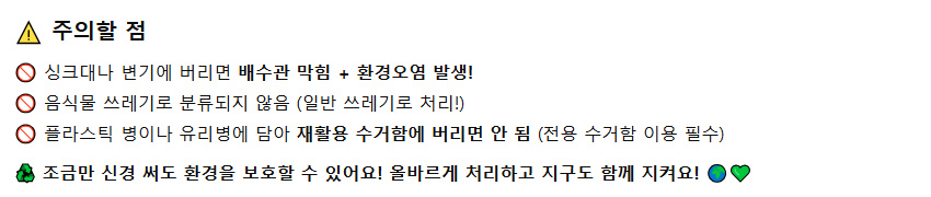 - 음식물 쓰레기가 아닌 일반 쓰레기로 분류됨!