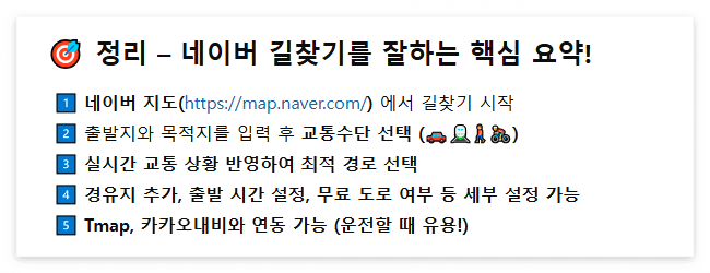 🎯 8. 정리 – 네이버 길찾기를 잘하는 핵심 요약!